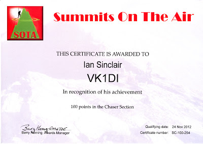 First contact was of course Peter VK3PF/P close by on Mt Big Ben. Worked 4 more chasers, then hung about with Peter to catch VK3YY/P Glenn on Mt Torbreck for another 3 way summit QSO. No signals real strong but didn't expect much with my setup.